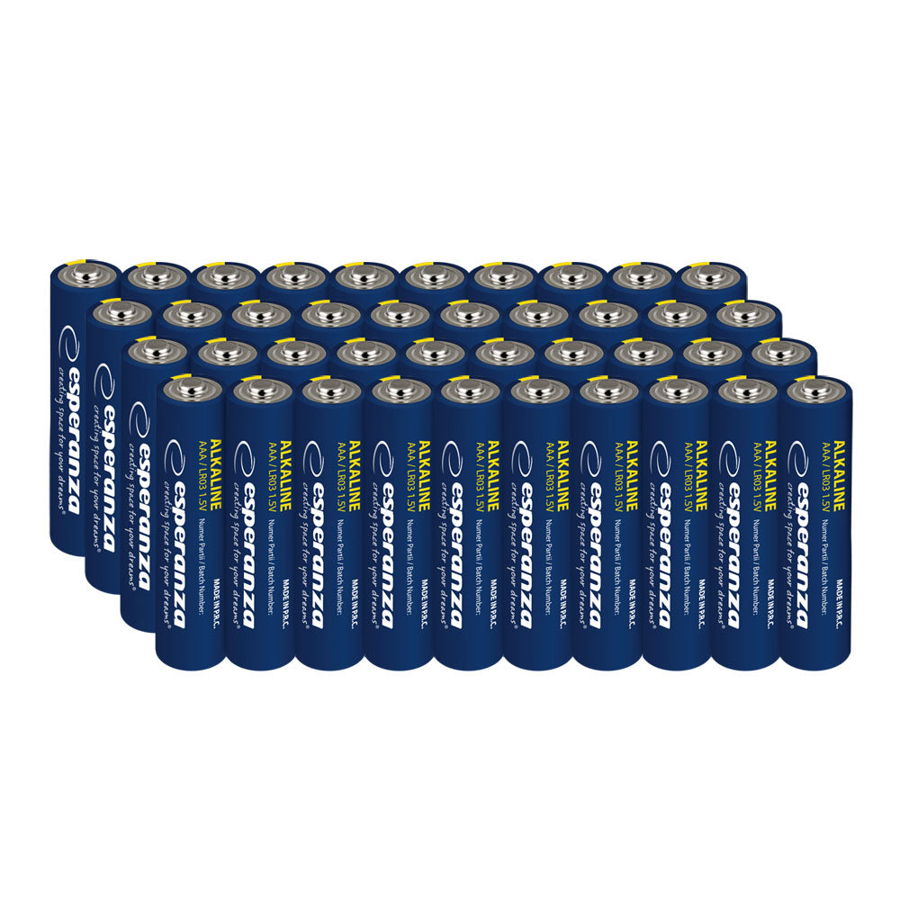 Najwyższej jakości baterie alkaliczne Esperanza typu AAA (R3/LR3/LR03). Przeznaczone do codziennego użytku w urządzeniach o wysokim jak i średnim poborze mocy. Idealne do pilotów, budzików, zegarków, latarek, radia, zabawek elektronicznych, przenośnego sprzętu elektronicznego itp. Baterie alkaliczne charakteryzuje dłuższe działanie w porównaniu do zwykłych baterii węglowo-cynkowych. Nasze baterie nie zawierają rtęci i kadmu.