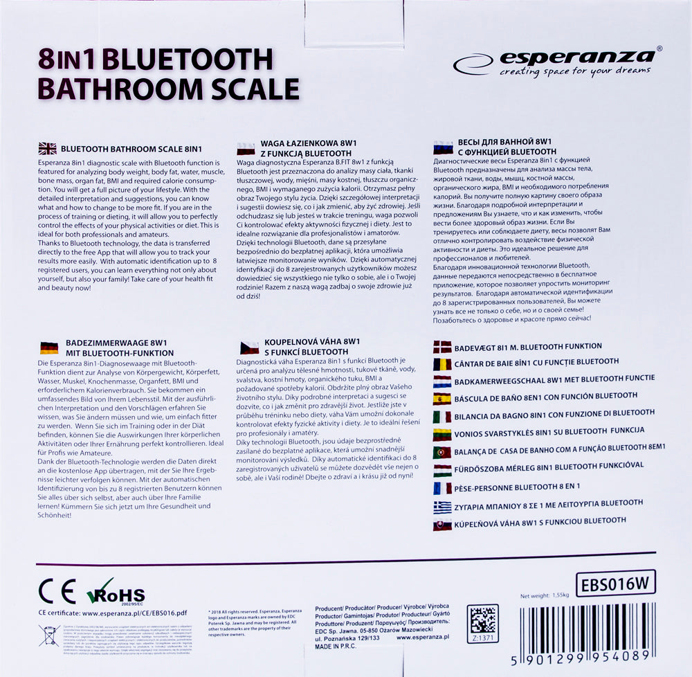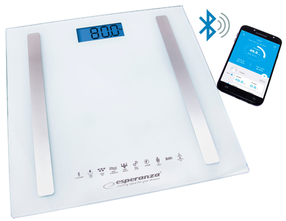ESPERANZA CYFROWA WAGA ŁAZIENKOWA ANALITYCZNA 8W1 BT B.FIT BIAŁA