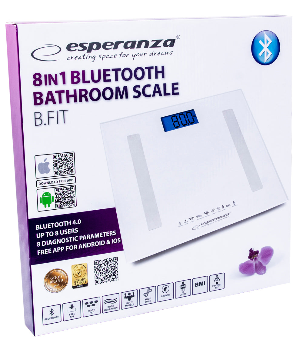 W naszej wadze diagnostycznej Esperanza '8w1' B.FIT do pomiaru komponentów składu ciała wykorzystana została innowacyjna technologia BIA (analiza impedancji bioelektrycznej). W szybkim czasie od pomiaru pojawia się informacja o wszystkich niezbędnych parametrach ułatwiających kontrolę stanu twojego zdrowia. Waga analityczna B.FIT przeznaczona jest do systematycznej kontroli składu ciała, okreslając na podstawie poprawnie dokonanego pomiaru osiem parametrów:
