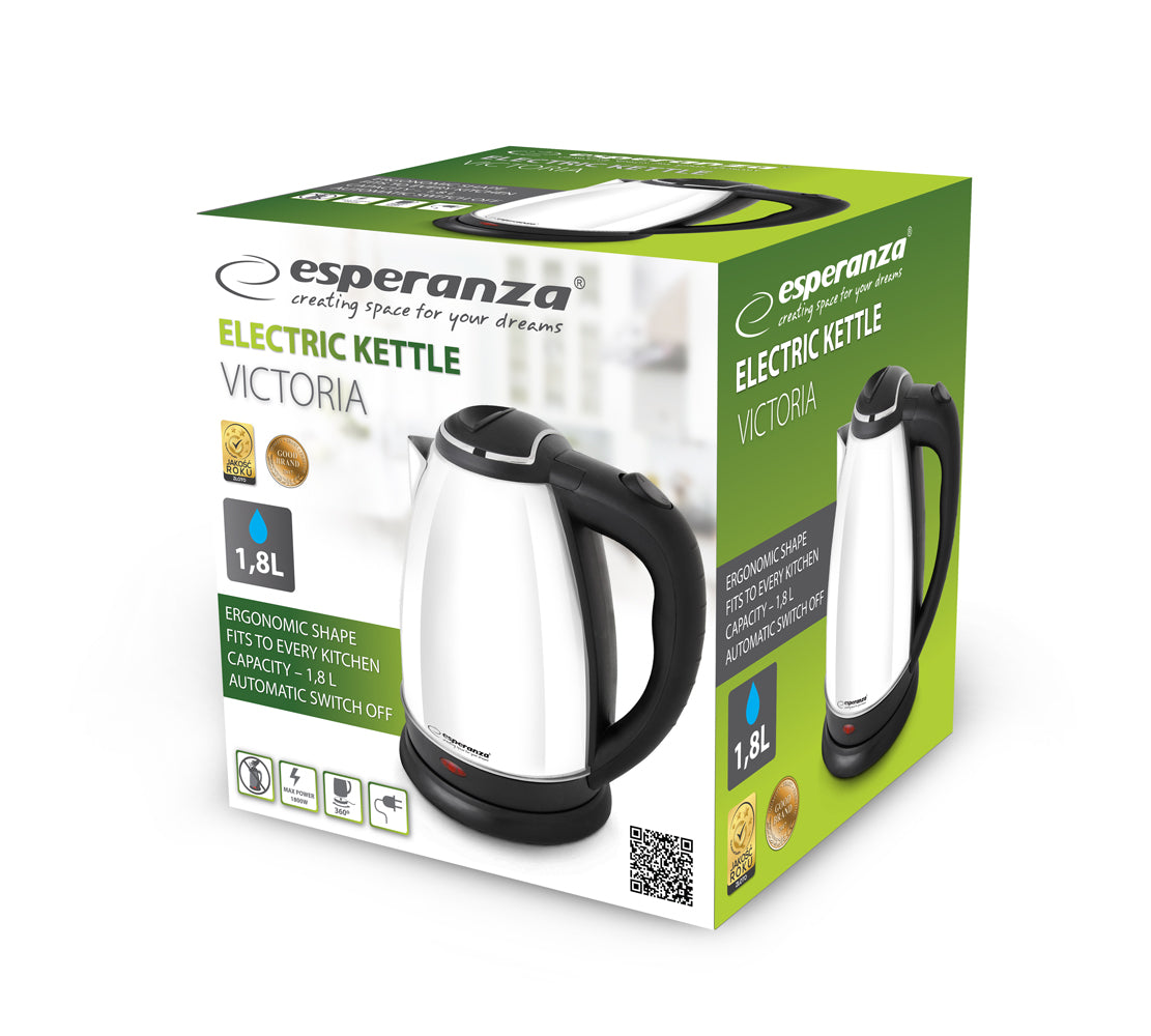 Nowoczesny i elegancki czajnik Esperanza VICTORIA wykonany ze stali nierdzewnej, w kilku wariantach kolorystycznych tak aby pasował do każdej kuchni. Ergonomiczny kształt i funkcjonalność sprawdzą się o każdej porze dnia i w każdym wnętrzu. Wyposażony w wygodny, wbudowany element grzewczy. Łatwe stawianie czajnika na podstawie. Nienagrzewająca się rączka zapewnia wygodę i wysoki komfort użytkowania.