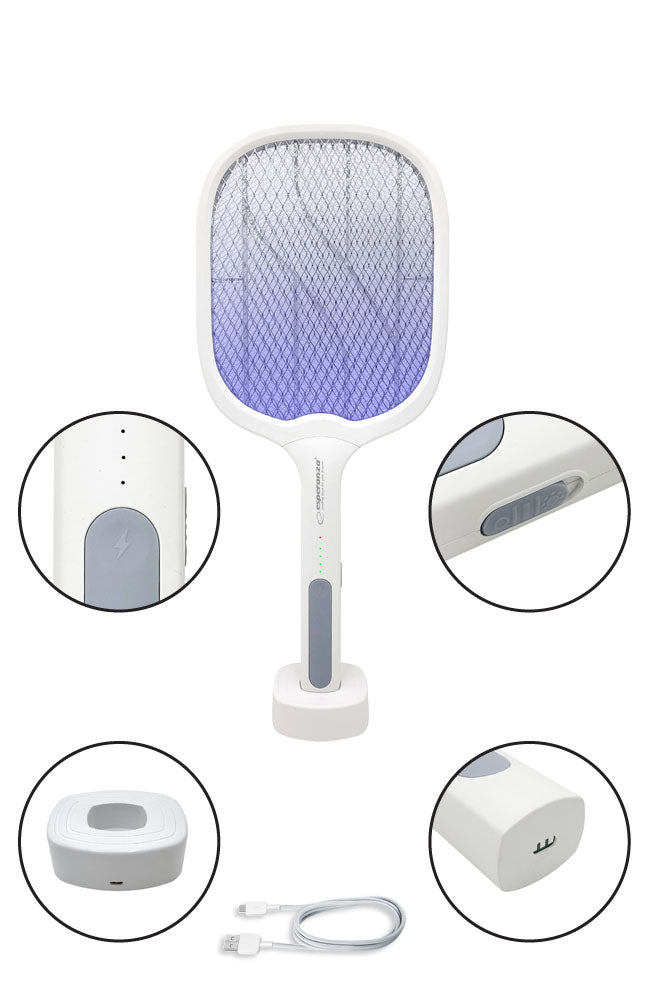 Elektryczna łapka na owady latające Esperanza BLASTER. Bardzo skuteczna w eliminowaniu insektów takich jak: muchy, komary, ćmy oraz inne owady latające. W urządzeniu nie są stosowane żadne środki chemiczne ani aerozole. Elektryczna łapka na owady nie wydziela żadnych zapachów, nie jest szkodliwa dla ludzi ani zwierząt domowych. Jest idealnym rozwiązaniem do użytku w domach, przydomowych ogrodach, itd.