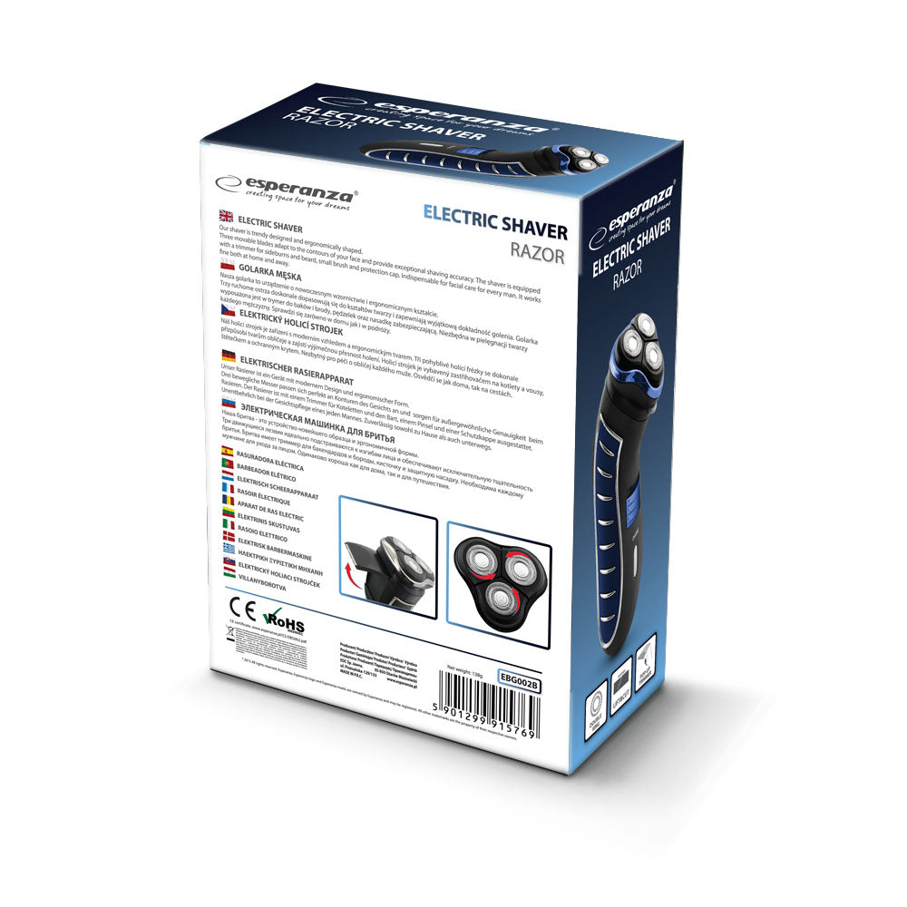 Nasza golarka Esperanza RAZOR to zaawansowane urządzenie, które łączy nowoczesny design z ergonomiczną konstrukcją, zapewniając wygodę i precyzję podczas golenia. Trzy ruchome ostrza idealnie dopasowują się do konturów twarzy, gwarantując dokładne i komfortowe golenie. Dodatkowo, urządzenie wyposażono w praktyczny trymer do stylizacji baków i brody, pędzelek do czyszczenia oraz nasadkę ochronną, która zwiększa bezpieczeństwo użytkowania. Esperanza RAZOR stanowi niezastąpiony element pielęgnacji dla każdego mężczyzny. Dzięki kompaktowym rozmiarom sprawdzi się zarówno w domowym zaciszu, jak i podczas podróży.
