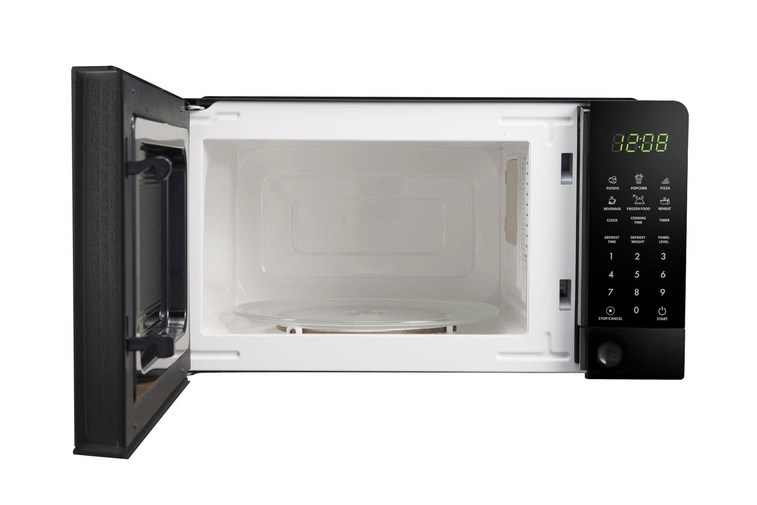 - Wyświetlacz LED: czas gotowania, poziom mocy, wskaźniki, godzina