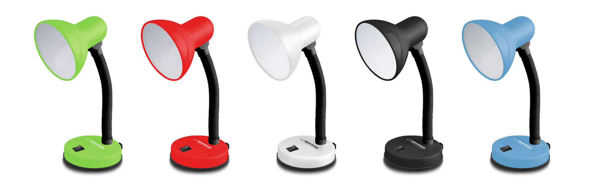 Klasyczna lampka biurkowa Esperanza VEGA z dużą, stabilną podstawką. Ruchome ramię umożliwia ustawienie lampki pod dowolnym kątem, co daje swobodę i komfort użytkowania. W lampce można instalować żarówki LED z gwintem E27 i mocą do 12 W.