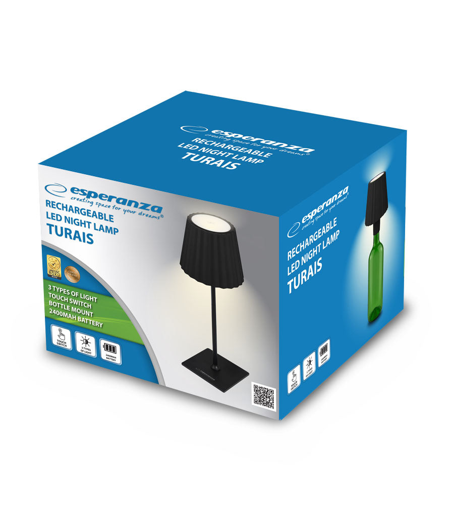 Nowoczesna lampka nocna LED Esperanza TURAIS o wszechstronnym zastosowaniu. Wyposażona w czuły panel dotykowy, umożliwia wybór jednego z trzech trybów oświetlenia, dostosowanych do różnych potrzeb. Dzięki kompaktowej konstrukcji oraz specjalnemu adapterowi może być zamocowana na butelce, co pozwala na jej kreatywne wykorzystanie w różnych wnętrzach. Wbudowany akumulator oraz możliwość ładowania przez port USB-C zapewniają wygodę użytkowania bez konieczności stałego podłączenia do zasilania.