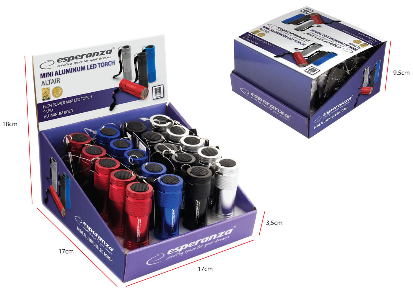 Mini latarka Esperanza ALTAIR, wyposażona w 9 mocnych diod LED, to praktyczne i wszechstronne narzędzie, które sprawdzi się w każdej sytuacji – zarówno na zewnątrz, w domu, jak i na kempingu. Dzięki kompaktowym wymiarom oraz lekkiej, aluminiowej konstrukcji, jest wyjątkowo poręczna i łatwa do przenoszenia, co czyni ją idealnym wyborem do codziennego użytku. Latarka zasilana jest trzema bateriami AAA, co zapewnia długi czas świecenia i niezawodność. Solidne wykonanie gwarantuje trwałość i odporność na warunki atmosferyczne, a jasne diody LED zapewniają skuteczne oświetlenie w każdych okolicznościach.