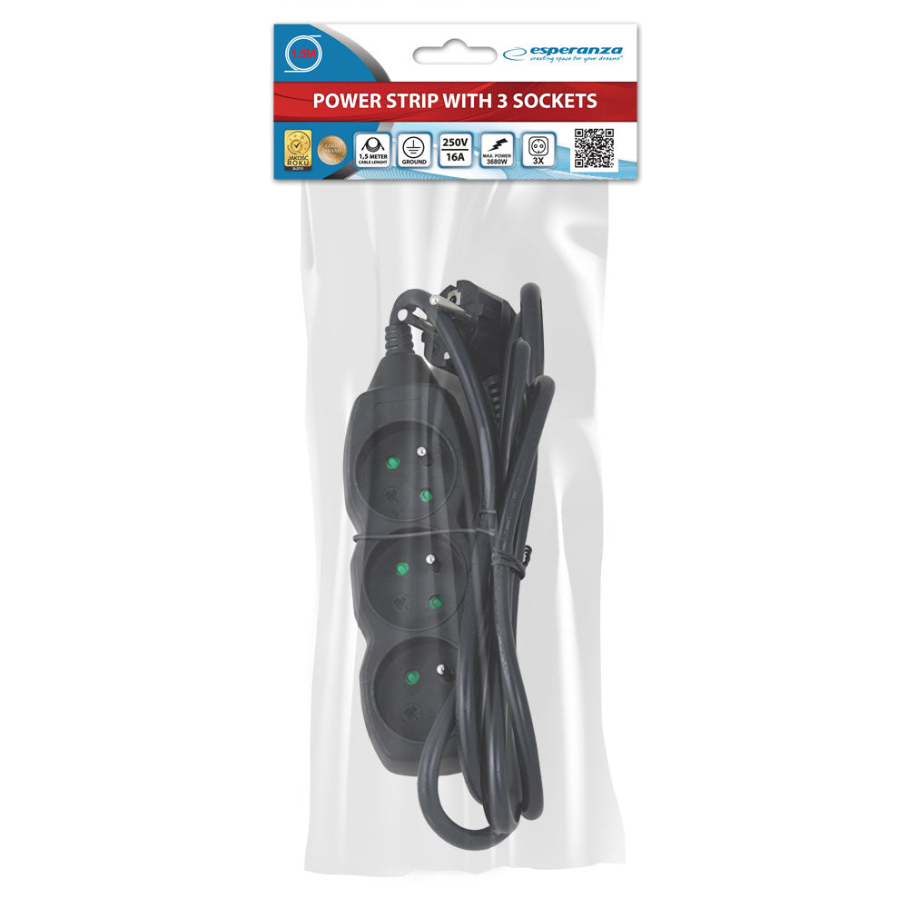 ESPERANZA LISTWA ZASILAJĄCA 3 GN. 1.5M CZARNA