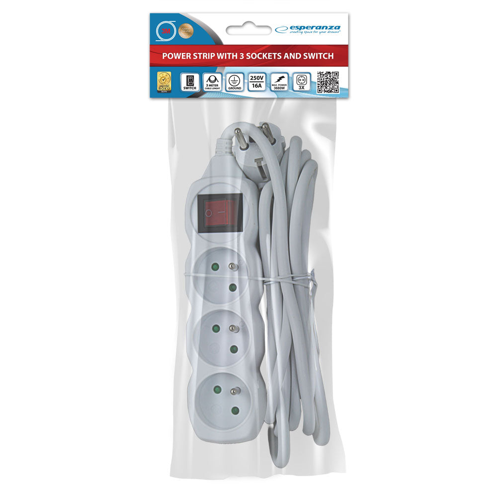 ESPERANZA LISTWA ZASILAJĄCA 3 GN. WŁ. 3M BIAŁA