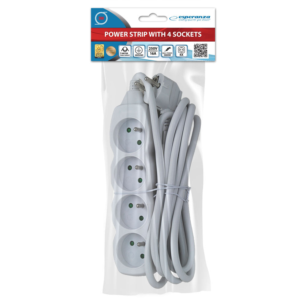 ESPERANZA LISTWA ZASILAJĄCA 4 GN. 3M BIAŁA