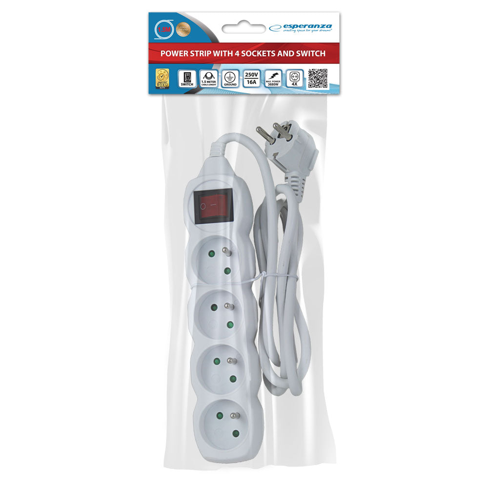 ESPERANZA LISTWA ZASILAJĄCA 4 GN. WŁ. 1.5M BIAŁA