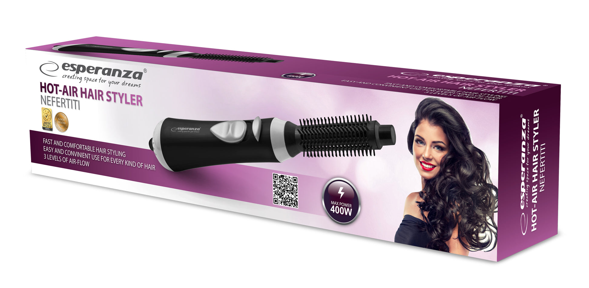 Lokówka Esperanza NEFERTITI to doskonałe urządzenie do stylizacji włosów. Przy jej pomocy szybko stworzysz idealną fryzurę na każdą okazję. Posiada trzy stopnie nawiewu, co umożliwia idealne dopasowanie do konkretnej fryzury czy typu włosów. Sprawdzi się podczas układania włosów o nawet najtrudniejszym do stylizacji typie.