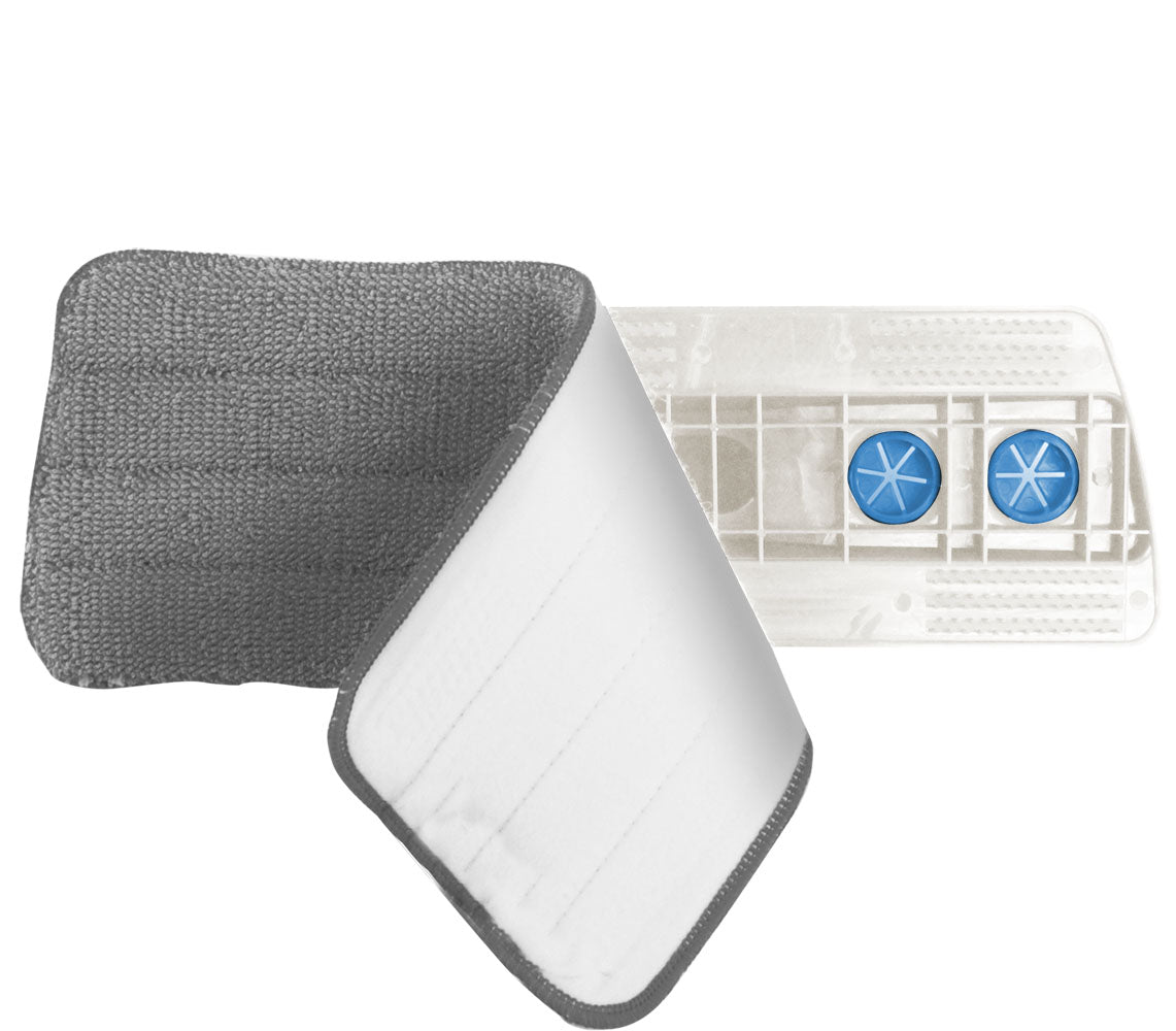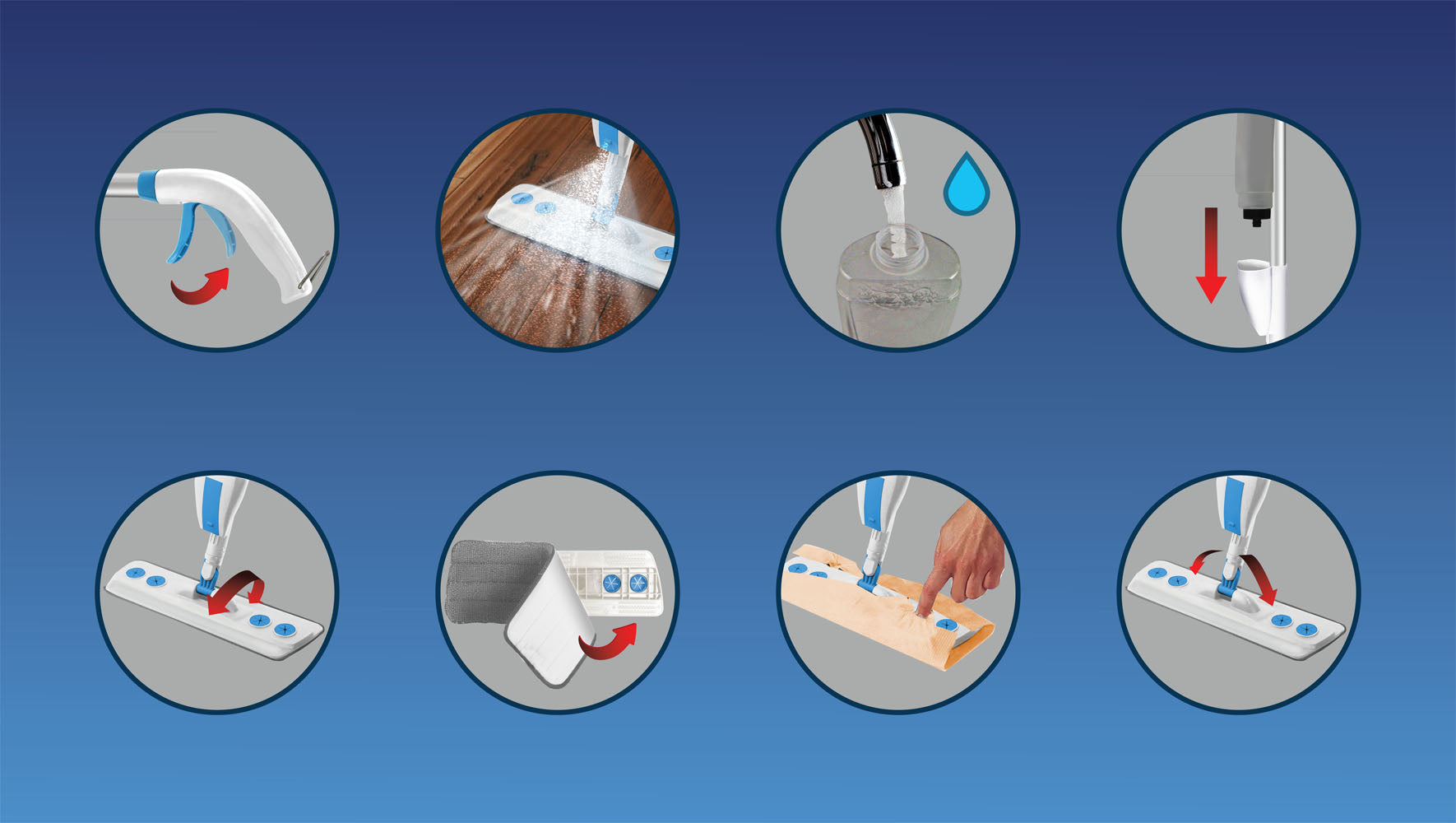 - Mikrofibrę można wymienić na ściereczkę lub ręcznik papierowy za pomocą 4 silikonowych uchwytów na płytce z rzepem