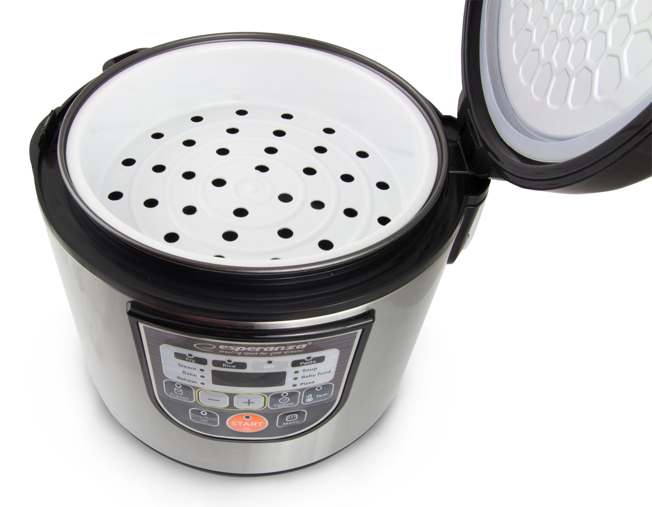 Nasz multicooker Esperanza MATE jest nieocenionym pomocnikiem w kuchni i dostarcza wielu korzyści. Posiada różne funkcje przygotowywania potraw, np.: smażenie, robienie frytek, gotowanie na parze czy pieczenie ciast i chleba. Oszczędza energie, zajmuje niewiele miejsca i znacznie skraca czas spędzony przy gotowaniu. Dzięki prostemu i intuicyjnemu wyświetlaczowi LCD można łatwo skonfigurować funkcje gotowania i dostosować ich czas do swoich potrzeb. Z naszym multicookerem przygotujesz wszystkie swoje ulubione potrawy szybciej i zdrowiej.