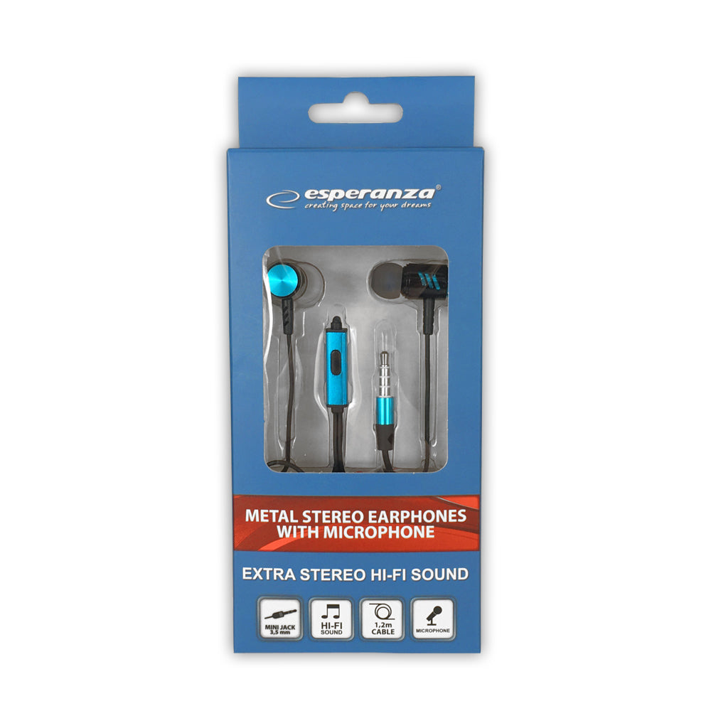 ESPERANZA SŁUCHAWKI DOUSZNE METALOWE Z MIKROFONEM EH207 CZARNO-NIEBIESKIE