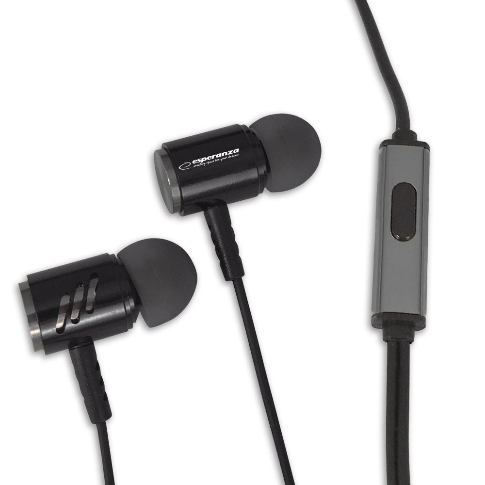 ESPERANZA SŁUCHAWKI DOUSZNE METALOWE Z MIKROFONEM EH207 CZARNO-SREBRNE