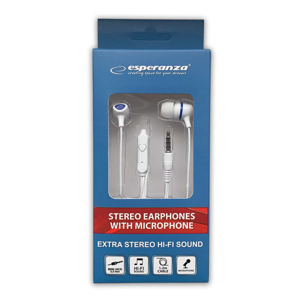 ESPERANZA SŁUCHAWKI DOUSZNE Z MIKROFONEM EH191 BIAŁO-NIEBIESKIE
