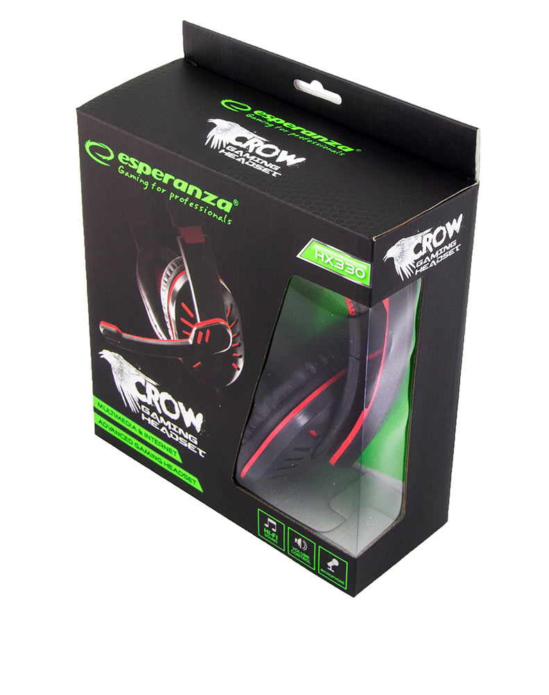 ESPERANZA SŁUCHAWKI Z MIKROFONEM GAMING CROW CZERWONE
