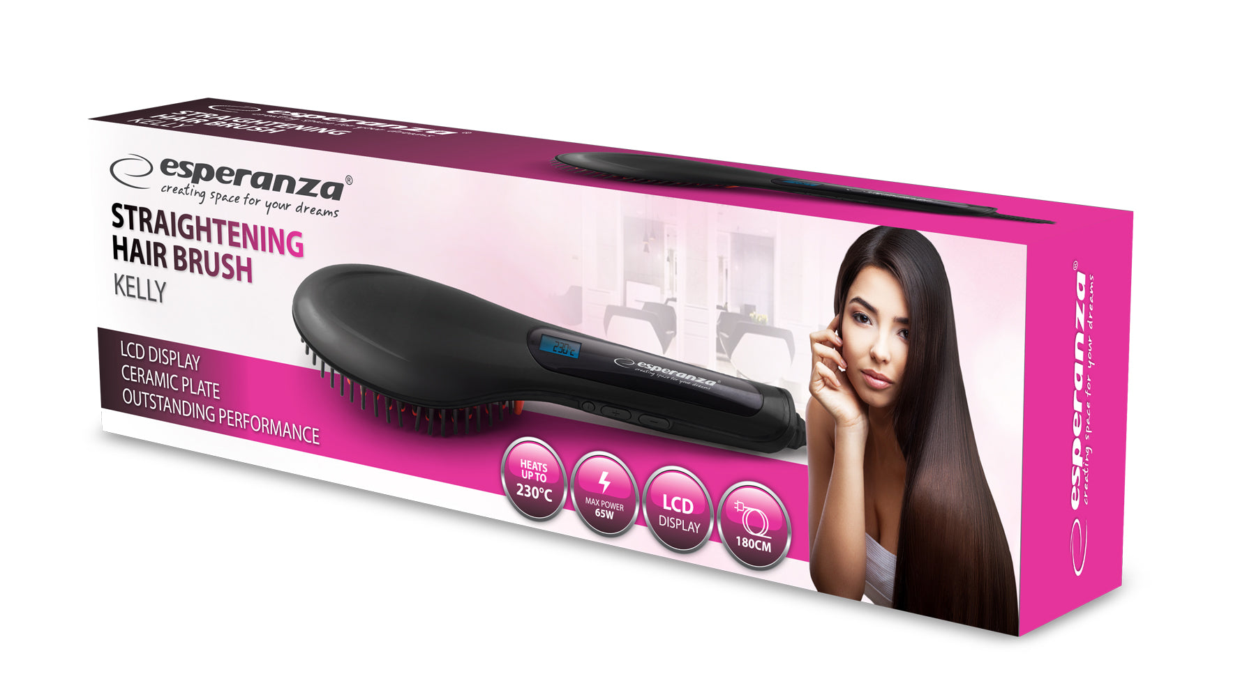 Szczotka prostująca włosy Esperanza KELLY to idealne połączenie prostownicy i szczotki do włosów, dzięki której ujarzmianie niesfornych włosów stanie się przyjemnością. To innowacyjne urządzenie pozwala wygładzić i wyprostować włosy w bardzo krótkim czasie. Dzięki regulowanej temperaturze, szczotka nadaje się do wszystkich rodzajów włosów. Nadaje im jedwabisty połysk i zdrowy wygląd, eliminując konieczność wizyty u fryzjera. Wyposażona w ceramiczną powłokę, szczotka KELLY nie niszczy włosów, a stylizacja staje się tak prosta, jak czesanie.