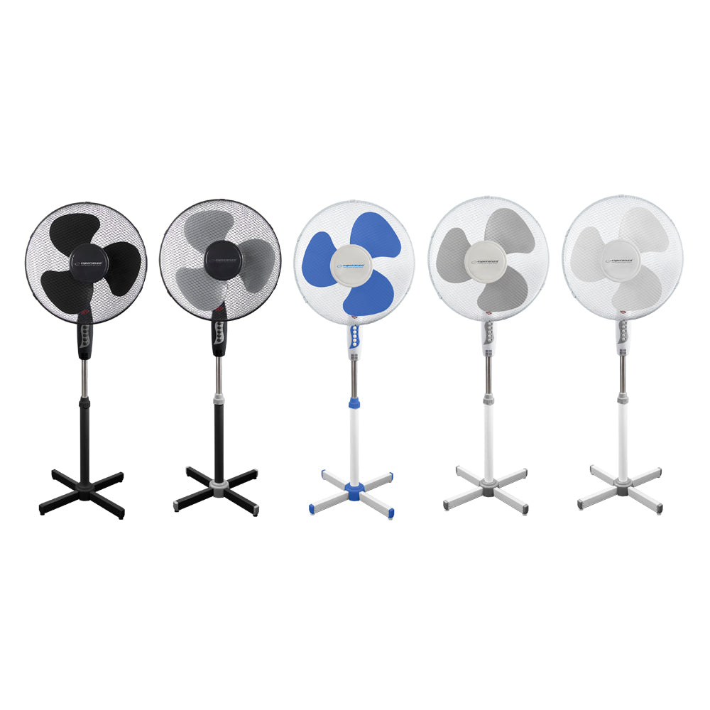 Stojący wentylator Esperanza HURRICANE. Stylowy wygląd i dostępna kolorystyka sprawią, że z łatwością wkomponuje się w każdego typu pomieszczenie, tak biurowe jak i domowe. Kratkowana osłona wirujących łopatek - przednia oraz tylna - przeszła "test dziecięcego palca" i gwarantuje bezpieczeństwo. Urządzenie charakteryzuje wysoka stabilność dzięki zastosowaniu wyposażonej w antypoślizgowe nakładki podstawy krzyżowej. Dodatkowo posiada lampkę pozycyjną, dzięki której błyskawicznie określisz jego umiejscowienie w ciemnym pomieszczeniu. Pozwól, by cichy wiatr szybko i sprawnie ochłodził twoje biuro lub dom.