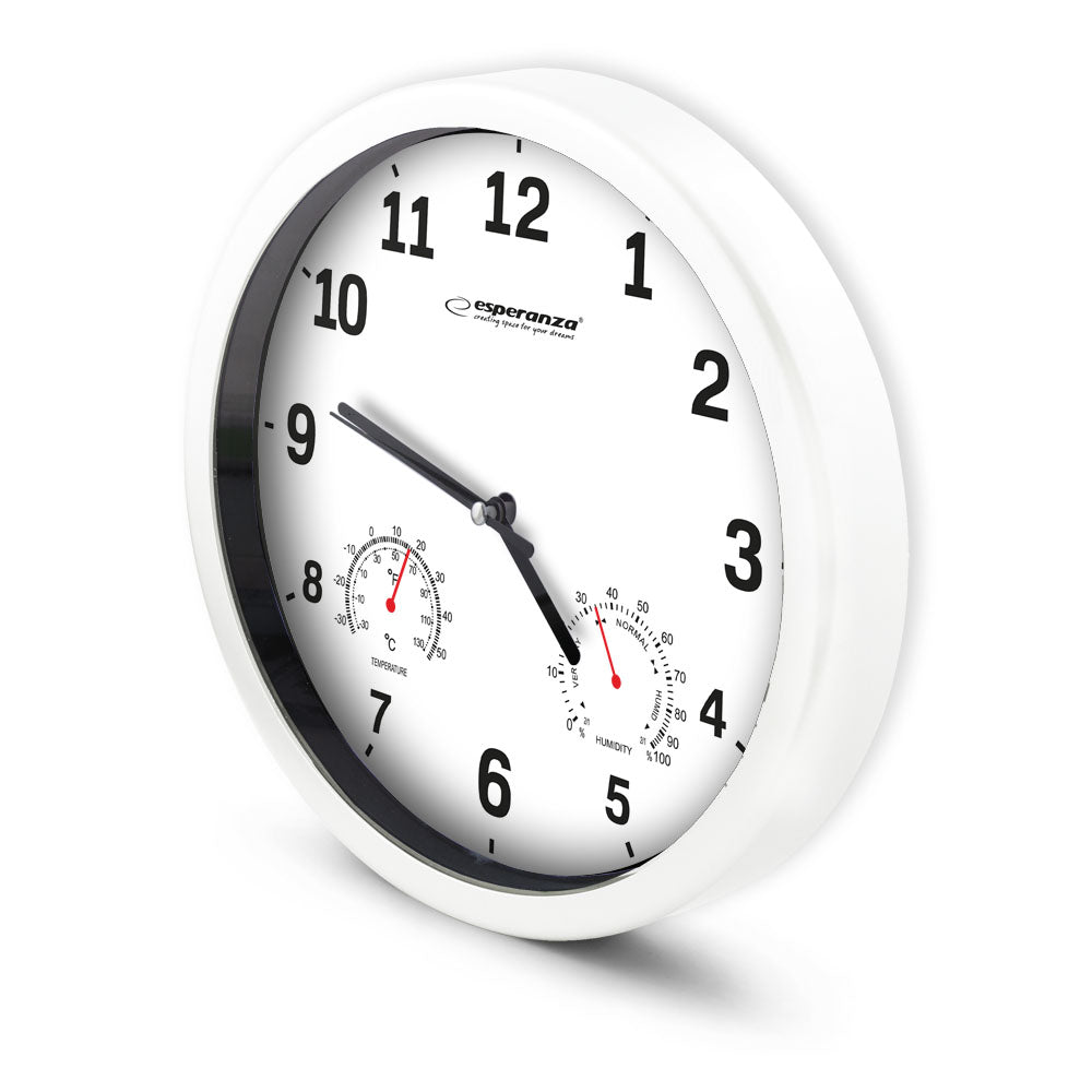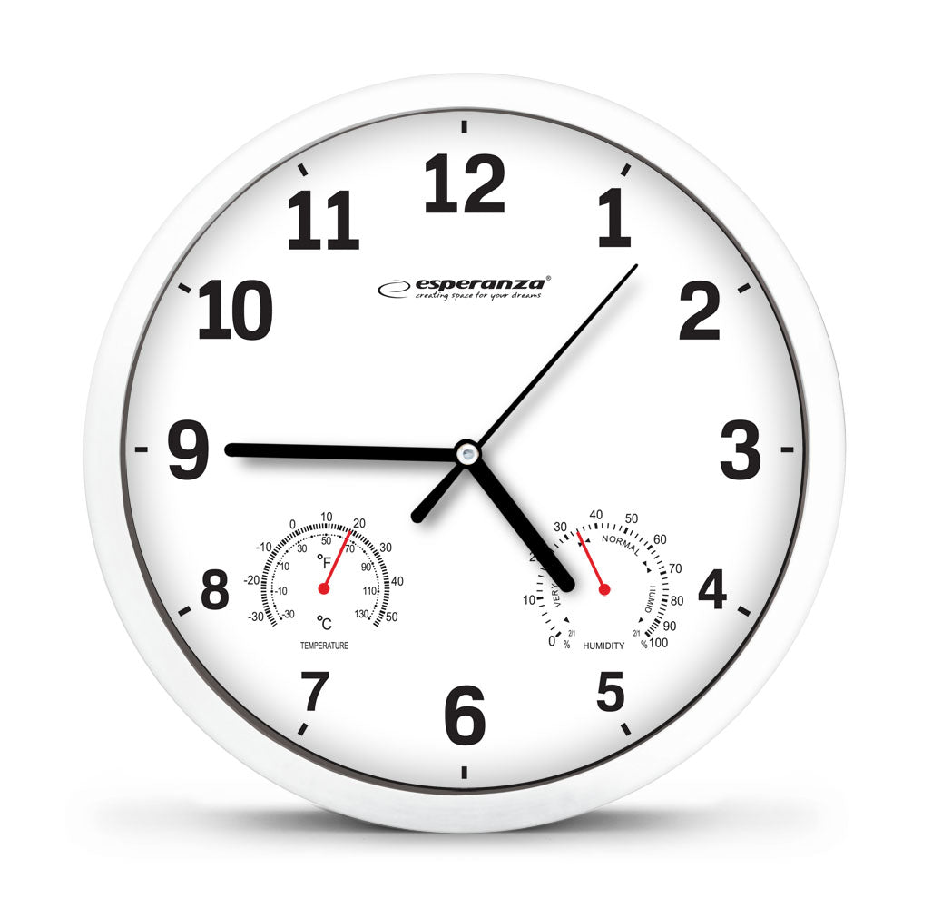 Nasz zegar ścienny Esperanza LYON prócz precyzyjnego pokazywania godziny, wskazuje również temperaturę oraz wilgotność otoczenia. Jego wzornictwo sprawia, iż udekorujesz nim każde mieszkanie, biuro, sklep czy restaurację.