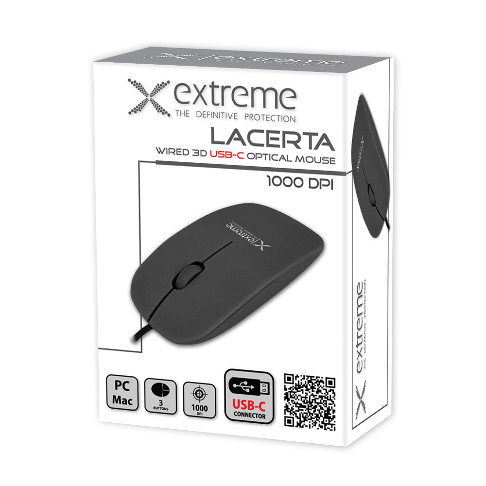 EXTREME MYSZ PRZEWOD. 3D OPT. USB-C LACERTA CZARNA