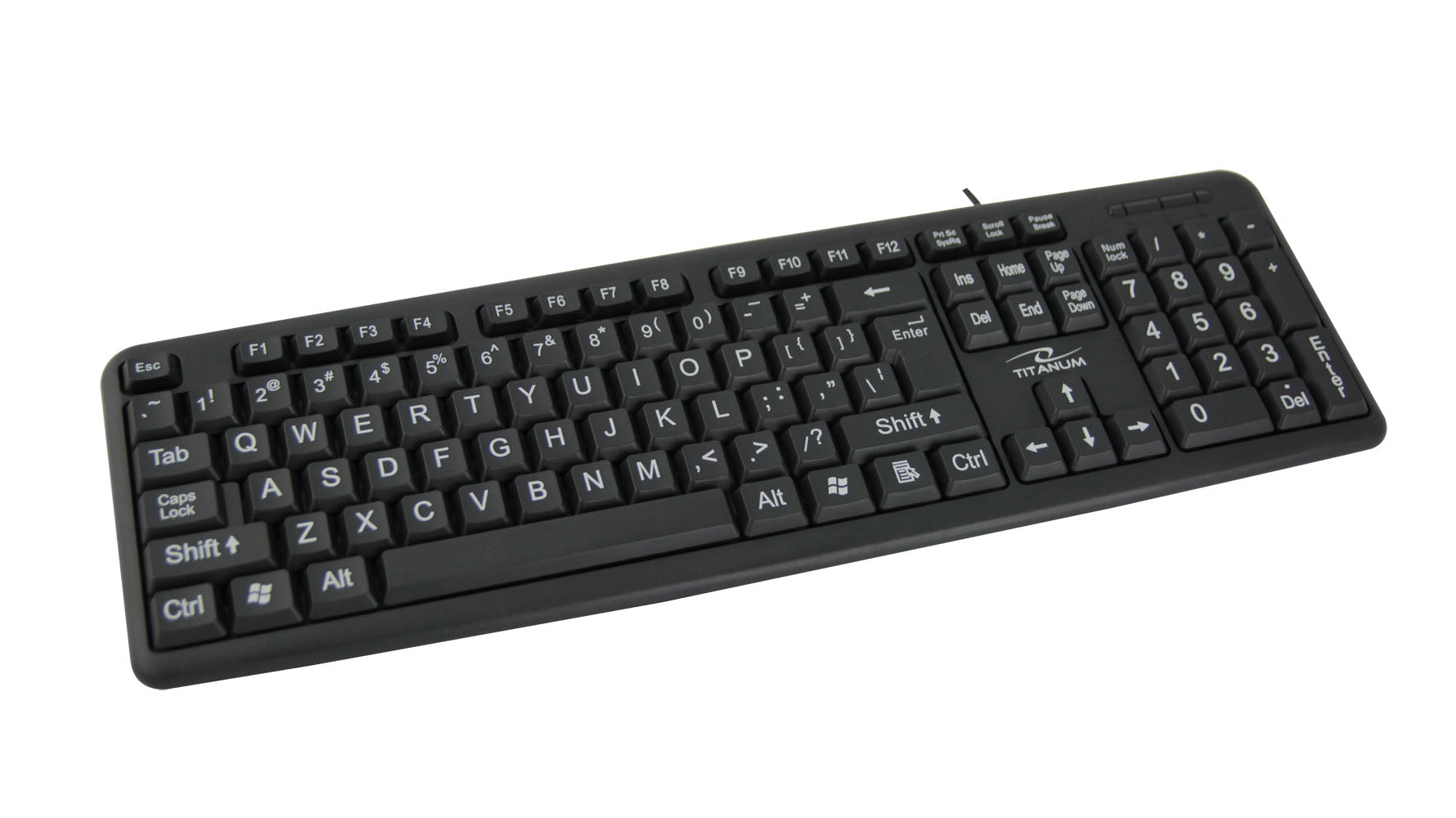 Wygodna, miła w dotyku, wysokiej jakości klawiatura Titanum do komputerów PC i MAC ze złączem PS/2. Elegancki wygląd sprawia, że doskonale będzie komponowała się z innymi akcesoriami na biurku. Ergonomiczny kształt i bardzo dobra elastyczność klawiszy zapobiega zmęczeniu dłoni podczas pisania. Litery oraz symbole zostały nadrukowane w najnowszej technologii UV i są pokryte specjalną warstwą ochronną nadającą im wysoką odporność na ścieranie. Wykonanie z wysokiej jakości materiałów zapobiega elektryzowaniu się. Dodatkowo klawiatura jest zabezpieczona przed generowaniem interferencji elektromagnetycznych.